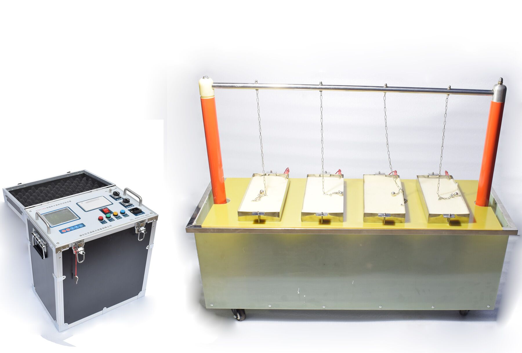 1. 絕緣靴(手套)試驗車,試驗車由:移動托架;盛水水槽;電極桿支撐等組成;