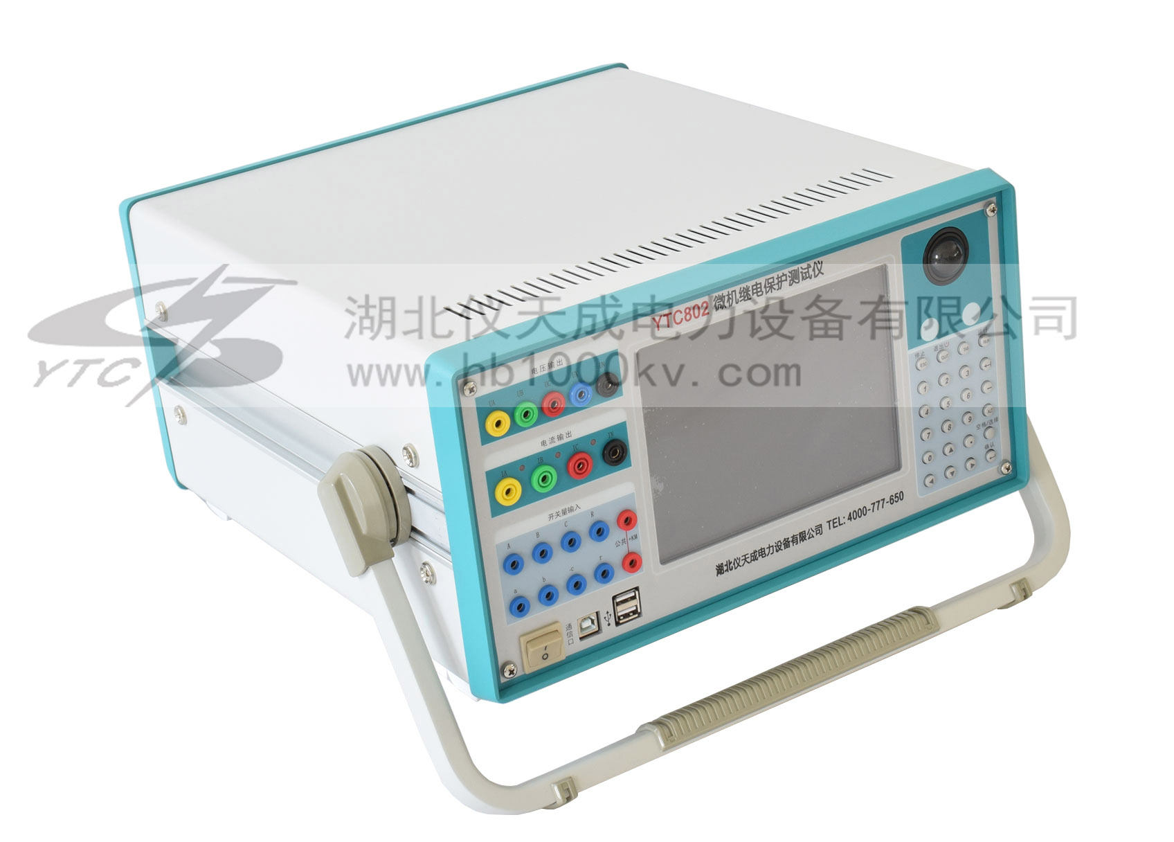 YTC802微機繼電保護測試儀,可對各類型電壓、電流、頻率、功率、阻抗、諧波、差動、同期等繼電器以手動或自動方式進行測試,