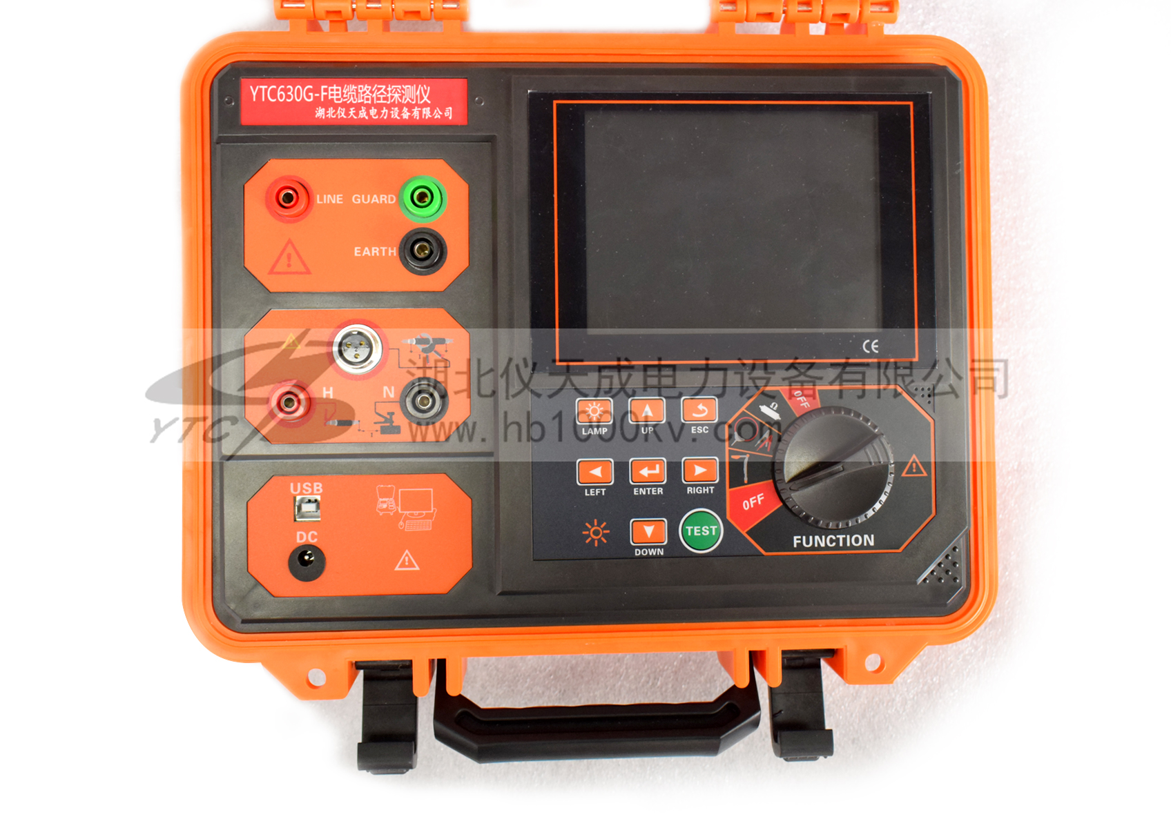 YTC630G-F 電纜路徑探測儀是一款綜合性能很強的路徑探測儀器。具有管線路徑深度探測、帶電電纜識別、停電電纜識別、管線接地故障查找、GPS測繪、接地電阻測試、絕緣電阻測試等多種功能。儀器由發射機、發射電流鉗、接收機、接收柔性電流鉗、連接測試線、聽診器、A字架(選配件)、測繪APP(選配)、RTK(選配)等組成。