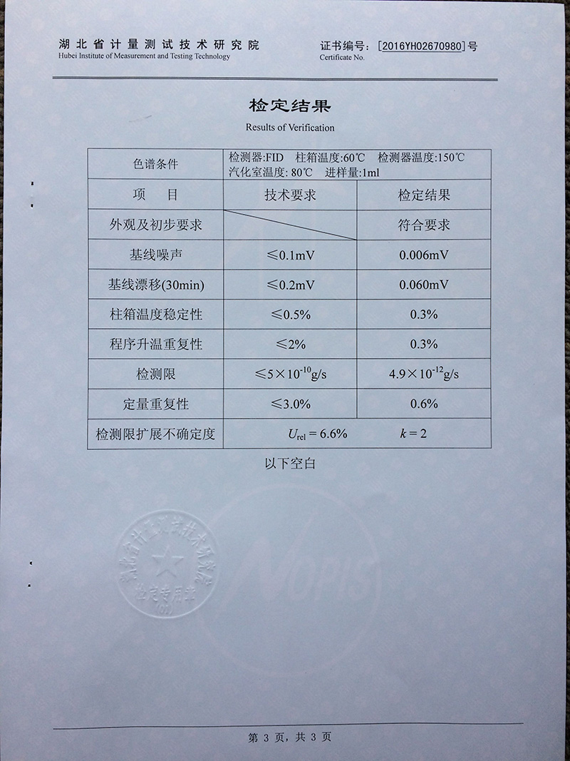 FID檢測器檢出限 ≤3×10-12g/s(十六烷)