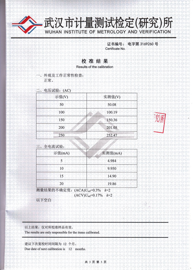 全電流測量范圍 0—10mA有效值,50Hz/60Hz  準確度:±(讀數×5%+5µA)